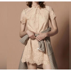 SANDRO beige cream lace short sleeve mini dress sz 4