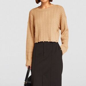 SANDRO- Cropped Cable-Knit Sweater in Beige
