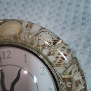 SANDS OF TIME 8" ACRYLIC LUCITE SEA SHELLS BEACH TIME WALL CLOCK BATTERY