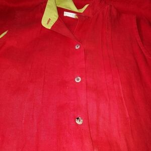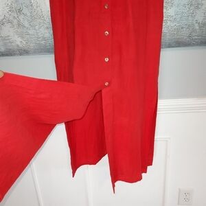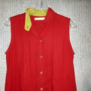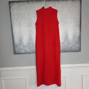 100% imported linen, maxi sleeveless high collar with front pleats detail, front button closure, slit at front and sides, side pockets