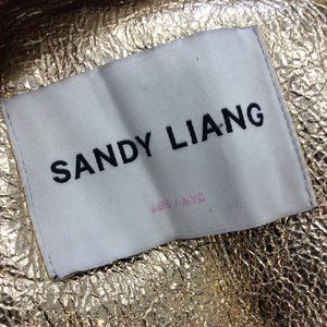Description: Sandy Liang Gold Metallic Lamb Shearling Moto Zip Biker Jacket.