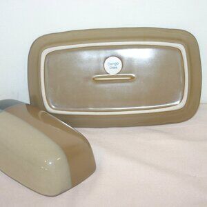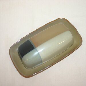 An elegant Sango Gold Dust Black butter dish with lid. Sango Gold Dust Black was one of Sango’s most popular pattern in the early 2000’s. This is a gently used dish with no visible cracks, chips or crazing. Add to your Sango collection or match it to your other décor.