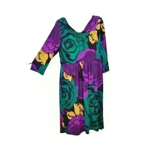 SANGRIA Womans MULTI-COLOR FLORAL Dress 3/4 Sleeves WATERFALL Neck size 14 Lg