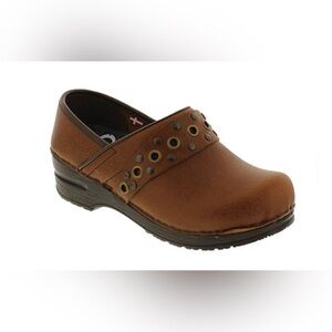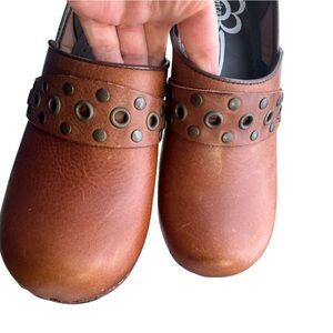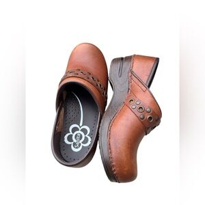 SANITA Caddo Brown Leather Danish Clogs Size 37