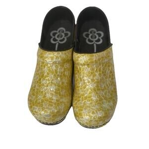 SANITA THE ORIGINAL DANISH LEATHER WOMEN'S CLOGS SZ 38 (EU) YELLOW SNAKESKIN