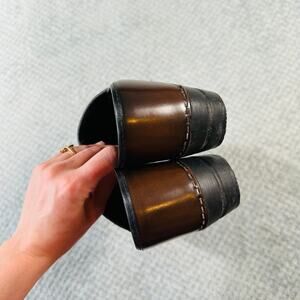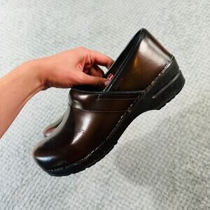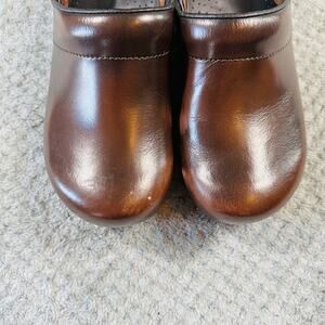 SANITA chocolate brown leather round toe womens comfort shoes clogs 42/11
