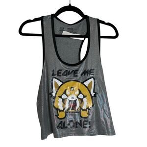 SANRIO Aggretsuko Racerback Tank NWT Gray Shimmer Graphic Tee Size M