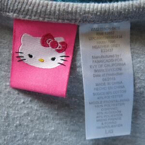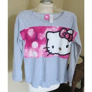 SANRIO HELLO KITTY Long Sleeve Top Size L Girls High Low Gray/Pink Fall School