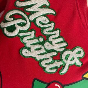 Get into the festive spirit with the charming SANRIO Hello Kitty Ugly Christmas Sweatshirt. Perfect for both kids and adults who love a bit of holiday fun! This adorable sweatshirt features the iconic Hello Kitty dressed in delightful Christmas attire, standing next to a beautifully decorated Christmas tree, with the festive message 'Merry & Bright' emblazoned across the front.