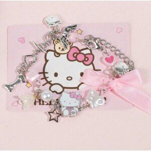 SANRIO Hello Kitty Pink, Pearl & Pink Bow Charm Bracelet (BRAND-NEW & SO CUTE!)