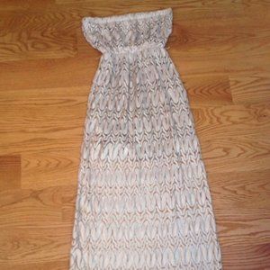 SANS SOUCI STRAPLESS SHEER LACE MAXI DRESS WOMENS S BEIGE LINED POLYESTER BOHO