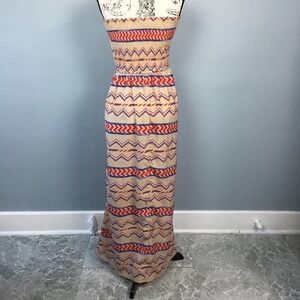 Sans Souci Strapless Shirred Top Aztec Tribal pattern Maxi Dress. Size M.