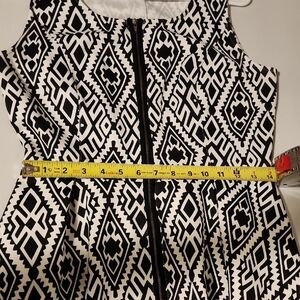 Stylish dress with a bold black and white geometric pattern. Perfect for any occasion.