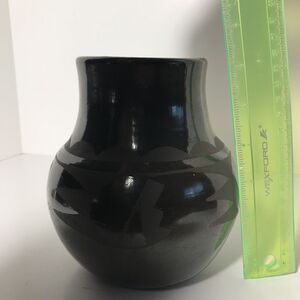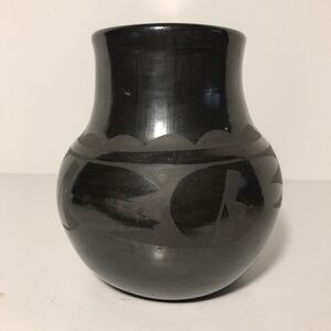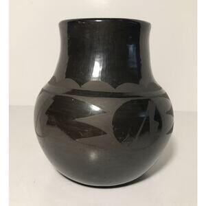 SANTA CLARA PUEBLO BLACK On Black POTTERY Flora Naranjo 6 1/2” inches tall