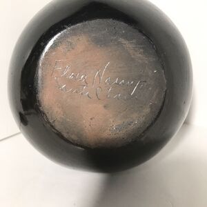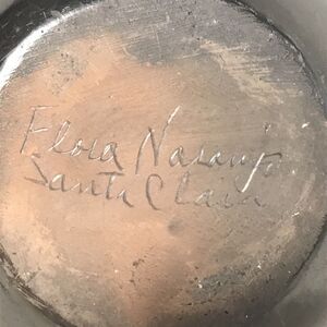 This beautiful piece of pottery is a stunning example of the artistry of Flora Naranjo, a renowned artist from the Santa Clara Pueblo in the American Southwest. The intricate design features a black on black color scheme, with handmade details that showcase the rich culture of Native American pottery.