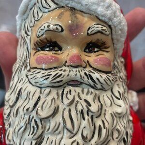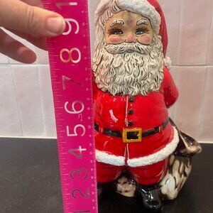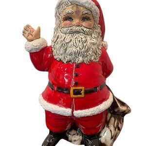 SANTA CLAUS WITH SACK HAND PAINTED CERAMIC FIGURINE STATUE 10" VINTAGE CHRISTMAS