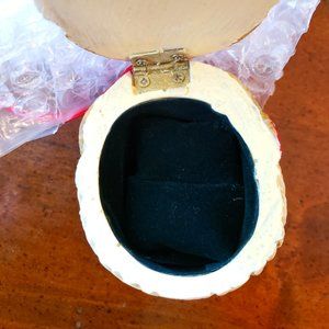 This resin Santa Clause head has a hinged top that opens and inside is a cleverly hidden ring box.