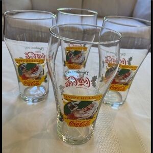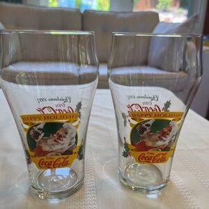 Traditional contoured Coca-Cola glasses. Glasses are 6 1/2 inches tall.