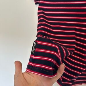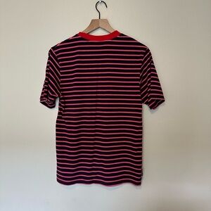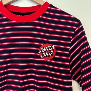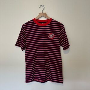 Elevate your casual style with the Santa Cruz Skateboard Men's T-Shirt. Featuring bold red stripes, this shirt offers a classic and comfortable fit. Perfect for everyday wear.