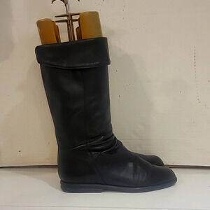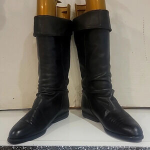Classic Santana Canada black leather pill on riding boots. The top of the boots have been turned down. The length around the top of the boots is 15". They are in great condition. Please see all pictures.