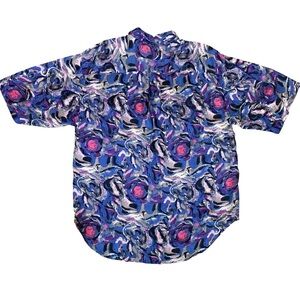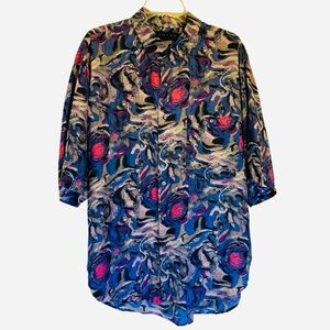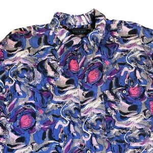 SANTANA Men's size XL 100% SILK Bright Swirl Patterned button up Shirt Vintage