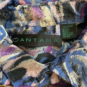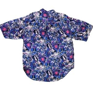 SANTANA Men's size XL 100% SILK Bright Swirl Patterned button up Shirt Vintage