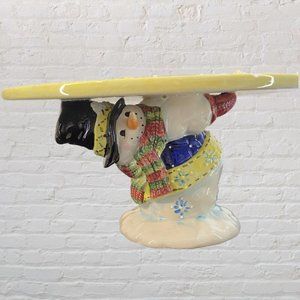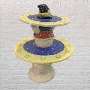 SANTA'S WORKBENCH -- NEW Christmas 2-Tiered Cake/Candy/Treat Plate with Snowman