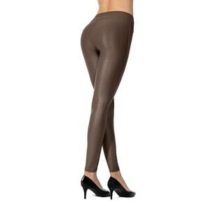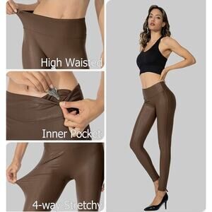 SANTINY Women's S Brown Faux Leather Leggings Pants Stretch High Waisted New!