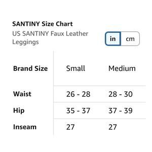The SANTINY Women's Brown Faux Leather Leggings Pants are a stylish and versatile addition to any woman's wardrobe. These high-waisted leggings feature a solid brown color and a stretchy material for added comfort and flexibility. With a 25.5-inch inseam and a size small waist size of 28 inches, these leggings are perfect for various activities such as yoga, running, and casual wear. The sexy and trendy design of these leggings makes them suitable for different seasons including winter, summer, fall, and spring, making them a must-have for any woman looking for a fashionable and practical clothing option.