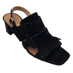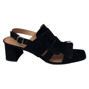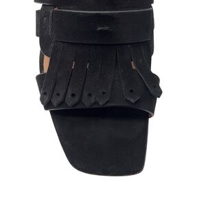 SANTONI BLACK FRINGED SUEDE SANDALS