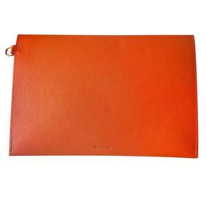 SANTONI Grain Leather Envelope Clutch Orange NEW IN BOX