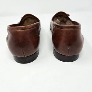 SANTONI ITALY RELAXED GEOMETRIC MOC TASSEL LOAFER BROWN LEATHER MENS SIZE 10 D