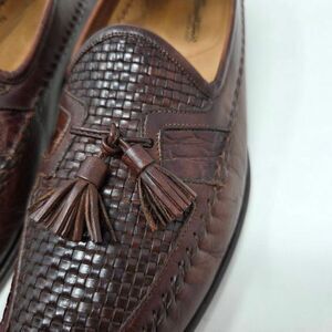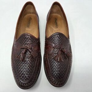SANTONI ITALY BROWN WOVEN CROC ACCENT TASSEL LOAFERS MOC TOE MENS SIZE 11.5 D