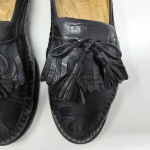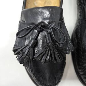 SANTONI RELAXED ITALY BLACK KILTIE TASSEL LOAFERS MOC TOE MENS SIZE 9.5 EE WIDE
