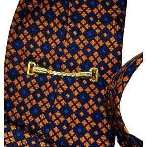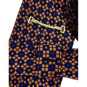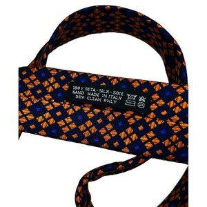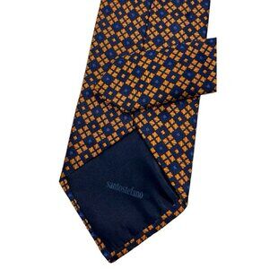 SANTOSTEFANO Men's 100% Silk Necktie LUXURY Tie Navy Orange Geometric W:3.8" EUC