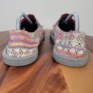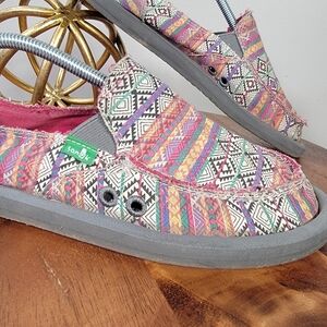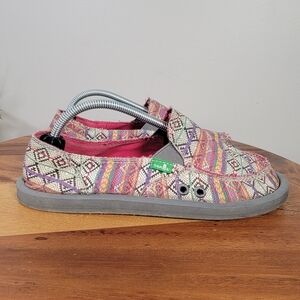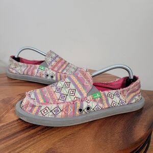 SANUK Donna Tribal Magenta / Multi Color Striped Shoes Size 7 Slip On Loafers