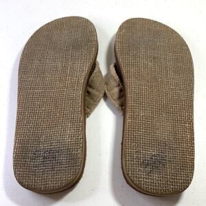 Size 9. The straps are made from hemp and the food bed is suede. Some light wear and marks on the soles. There is a mark on the heel bed where the price sticker used to be. Good used condition! Think you’ll find more cushiony, more versatile, more sustainably-made flip flops than this? Fraid Not. A mega comfy update to a bestselling style, Fraid Not ST got a boost of extra cushy, high-rebound Soft Top Foam between the formfitting, responsibly sourced suede footbeds and new eco-conscious jute/rubber outsoles. Then we gave it hemp blend straps lined with fuzzy blanket textiles for an even greener appeal. And of course, it still pairs great with day dates, brunch buffets or sunset cocktails with the gang.
