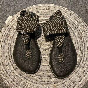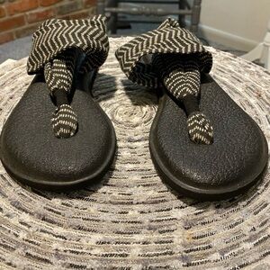 SANUK - STYLE SWS10535 - BLACK / WHITE CHEVRON-LIKE YOGA SANDALS - SIZE 6 - S8