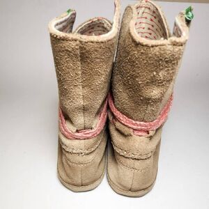 SANUK Suede Booties Chestnut Ankle Boots Arrows lining Size 8