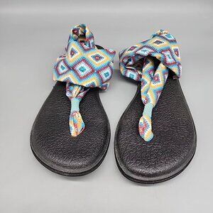 SANUK YOGA SLING 2 PRINTS THE RANCH AQUA YOGA MAT SANDALS, US 9 EUR 40