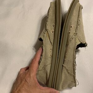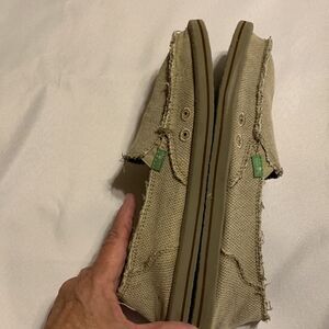 SANUK Donna Size 10 slip on sneaker. One small spot on left shoe as seen in photos did not come out in laundry. Excellent condition and smoke free/pet free home