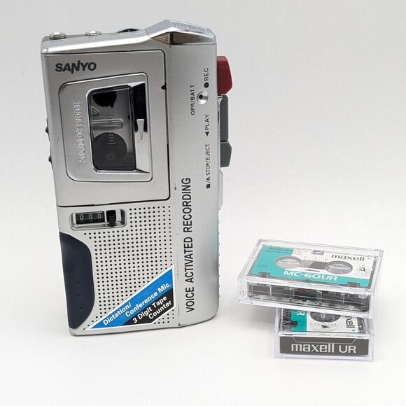 SANYO TRC-590M Microcassette Voice Activated Recorder Dictaphone w/Tapes TESTED Comes with 2 Brand New Microcassette Tapes *Batteries NOT included Previously Owned. Minor scratches. In working condition.