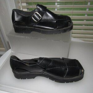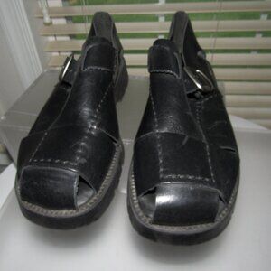 SAO Leather Men's Fisherman Sandals – Black Lug-Sole Fisherman Style, Size 9.5M