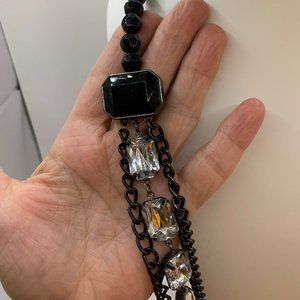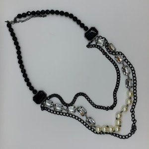 SAO Multi Strand Statement Necklace Black White Clear Fashion Jewelry J720