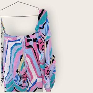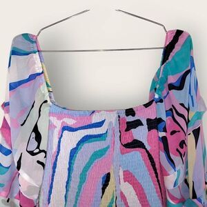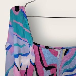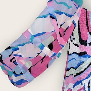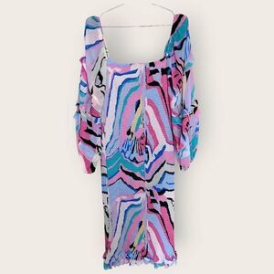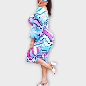 SAO Womens Dress | Sz 3X | Bodicon | Pink Blue Stretch Long Sleeves Chiffon Glam