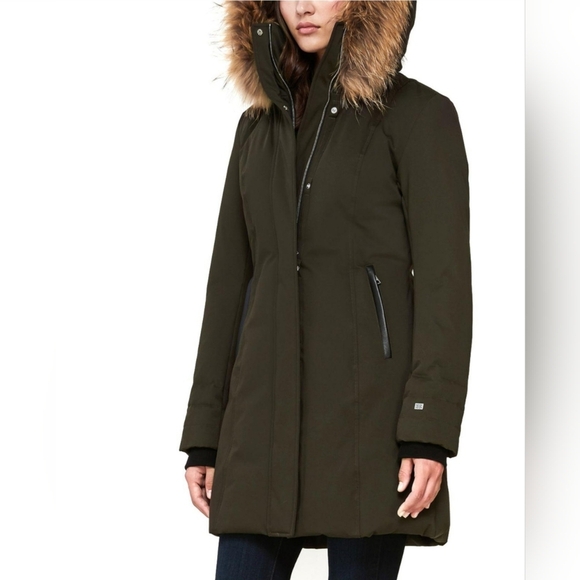 Beautiful Soia and Kyo deliver the ultimate luxurious down coat designed with fur surrounding the hood, a clever water-resistant finish, and sleek leather trim at each pocket.