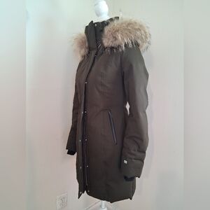 SAOIA & KYO Fur Trim Down Darkgreen Coat Size XS