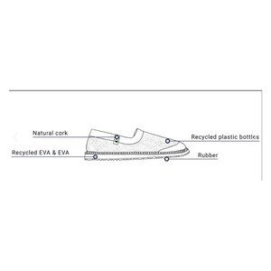Outsoles are made of natural cork for comfort, recycled EVA for lightness and natural rubber for maximum durability