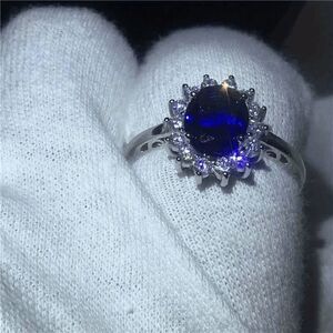 Stunning Sapphire White Gold Halo Ring with Diamond Accents