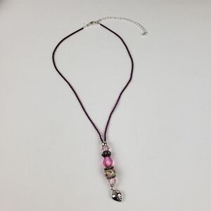 SAQ Handmade Glass Bead Heart Necklace Satin Cord Lanyard Valentine's Day